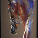 The horse’s eye is visible, adding an emotional and realistic touch, while the deep black background intensifies the overall contrast, drawing attention to the golden detailing. The minimalist color palette ensures the subject remains the focal point, making it an impactful and sophisticated piece of wall art.
