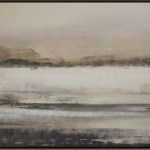 This is a captivating handmade painting that presents an abstract depiction of a landscape. The artwork is monochromatic, utilizing a color palette of browns, whites, and blacks. It portrays mountains in the background and a body of water in the foreground, creating a sense of depth and perspective. The painting’s abstract nature allows viewers to interpret the scene in their own unique way. This piece would make a sophisticated addition to any collection or space.