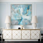 This is a stunning handmade painting that features an abstract design. The artwork is predominantly blue and gray, with accents of gold adding a touch of elegance. The painting is square in shape and has a textured surface, which adds depth and interest to the piece. Framed in a simple, thin gold frame, this painting exudes a modern and contemporary feel. This piece would make a sophisticated addition to any collection or space.