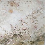 This is a handmade painting that beautifully captures a floral scene. The painting is done in a loose, impressionistic style, adding a touch of elegance and sophistication to any space. The flowers, which are the focal point of the painting, are pink and white, with green leaves and stems. They are arranged in a cascading manner, creating a sense of depth and dimension. The background is white, with some areas of light brown and gray, enhancing the vibrancy of the flowers.