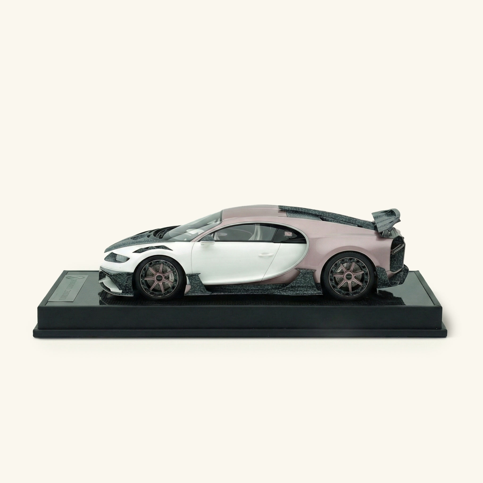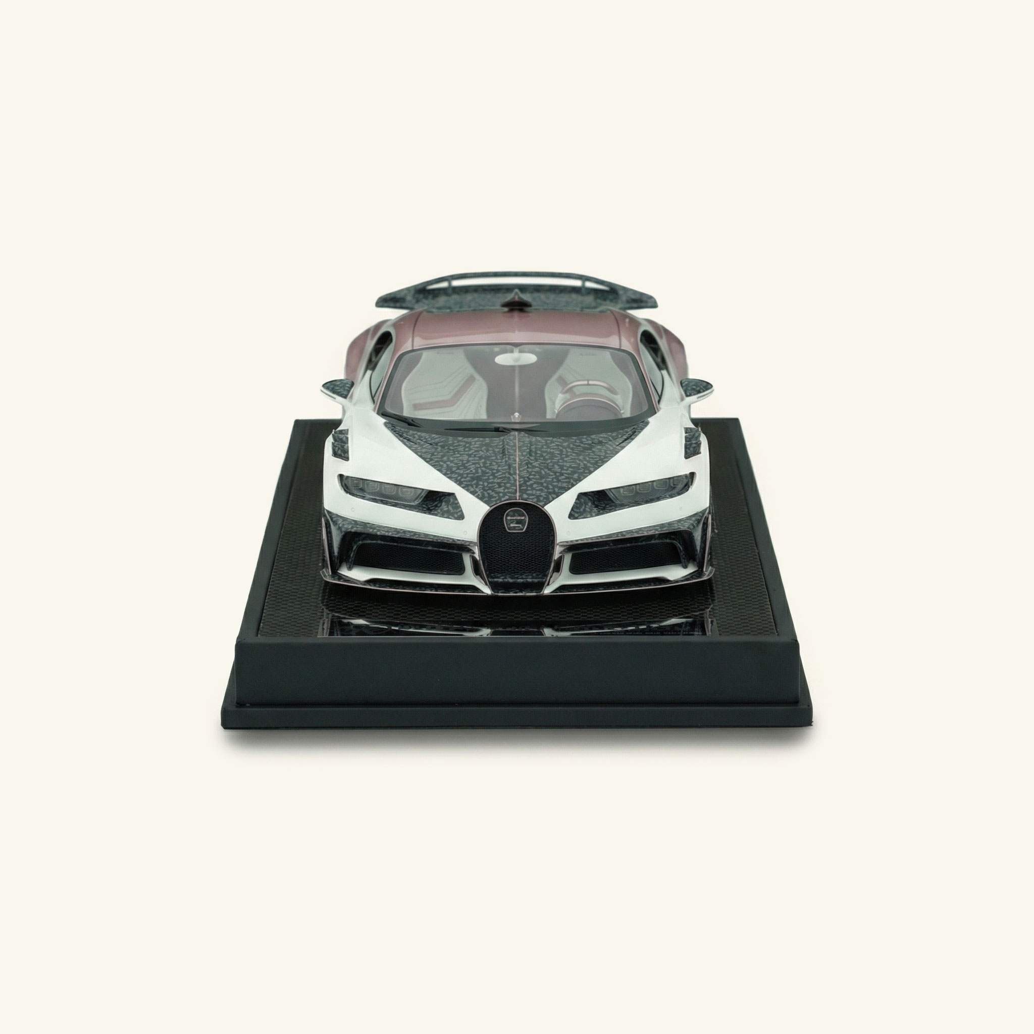 The Bugatti Centuria Resin Model in White / Passion Pink 16/99 is a striking fusion of elegance, rarity, and contemporary automotive artistry. Produced in precise 1:18 scale, this collectible highlights the bold Centuria design with a refined two-tone colorway—crisp white contrasted by expressive Passion Pink accents that emphasize its sculptural form and aerodynamic details. As a numbered piece from an exclusive edition of only 99 models, it offers strong collectible value for discerning enthusiasts. Ideal for modern interiors, curated displays, or luxury automotive collections, this resin model functions as both art object and design statement. Presented by Mente Art Gallery, every aspect of this piece is fully customizable—including colors, finishes, detailing, and display options—allowing each model to be tailored into a truly personal and unique collectible.