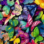 This handmade painting is a stunning display of nature’s beauty, featuring a mesmerizing collection of butterflies. Each butterfly is intricately detailed and painted with a palette of bold, lively colors that range from deep blues and purples to bright yellows, greens, and reds. The artwork is a visual feast, with the butterflies varying in size and shape, each adorned with unique patterns. The sense of movement in the painting is palpable, as if the butterflies are in mid-flight, fluttering their wings. The entire canvas is filled with these colorful insects, creating an enchanting mosaic that would be a focal point in any room. It’s a perfect piece for customers looking to bring a touch of the outdoors into their living space.