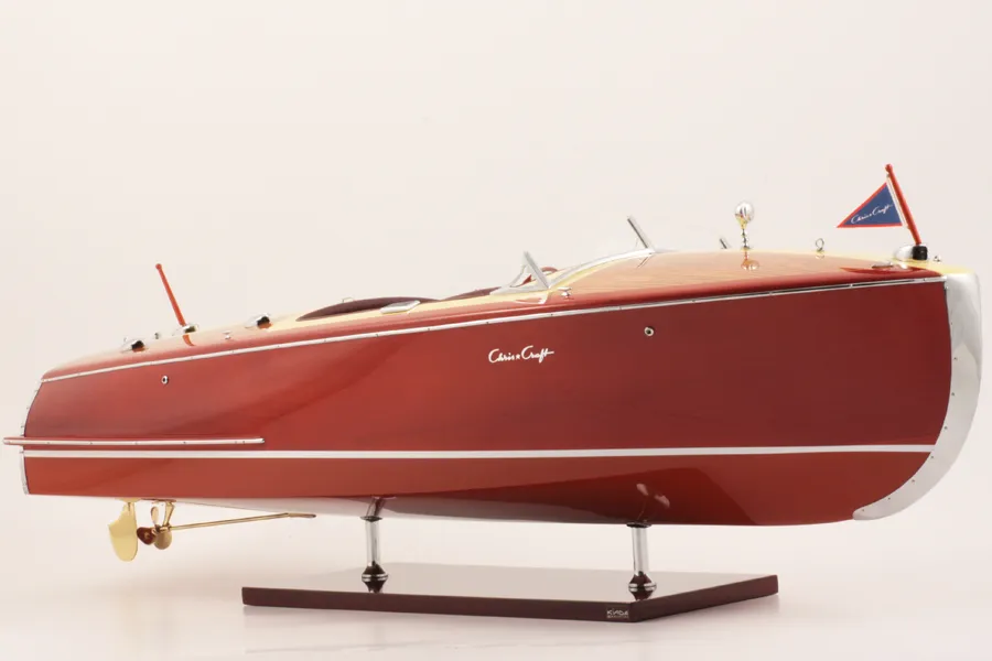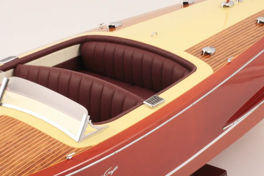 Riva Boats-Kiade Chris Craft Riviera is a sophisticated decorative model inspired by the legendary American wooden cruiser known for its sleek profile and commanding presence. This piece captures the spirit of classic boating heritage through elegant proportions, polished detailing, and timeless craftsmanship. Its balanced design makes it a striking focal point in luxury interiors, executive offices, lounges, and curated nautical collections.