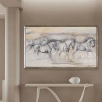 Each horse is portrayed in different poses—some running, others standing still—adding rhythm and energy to the composition. The abstract design allows this artwork to complement any decor style, making it a versatile centerpiece for homes, offices, or galleries seeking a statement piece.