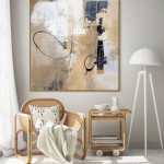 What makes this painting truly unique are the subtle blue and yellow accents, which add a pop of color and bring a sense of warmth to the piece. This abstract painting is more than just an artwork; it’s a conversation starter that would add character and charm to any room it graces. Its modern design and intriguing elements make it a must-have for art enthusiasts and collectors alike.