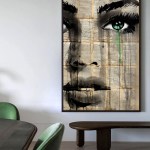 This handmade painting is a captivating piece of art that combines the allure of abstract and realism. The artwork features an intense, beautifully detailed eye with a green iris that stands out against the monochromatic background. The eye is painted on a collage of vintage-style paper, adding texture and depth to the piece. A streak of green paint flows from the eye, symbolizing emotion and expression. This artwork would make a striking addition to any space, offering both visual interest and a conversation starter.
