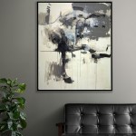 Capture the raw energy and spirit of a horse with Fable, a striking abstract painting rendered in black, white, and gray tones. The horse’s head is lowered and its body twisted, frozen in mid-motion, conveying power and spontaneity through broad, gestural brushstrokes and expressive drips.