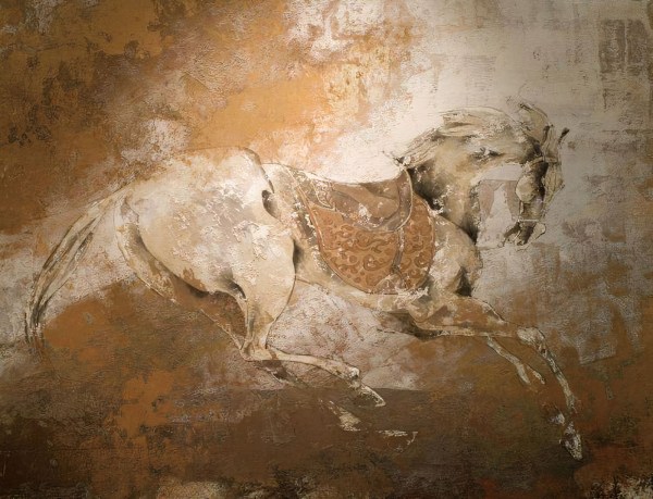 Bring movement and grace into your space with “Forward”, a handmade white horse abstract painting that radiates power and elegance. This captivating artwork features a majestic white horse in motion, adorned with a beautifully patterned saddle blanket. The horse takes center stage, its dynamic posture brought to life with expressive brushstrokes that capture both strength and fluidity.