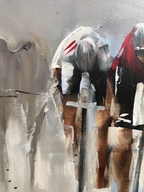 This handmade painting captures the dynamic energy of bikers as they speed toward the viewer. The figures are depicted with bold brush strokes, their forms merging into a blur of motion. The color palette suggests intensity and movement, with warm tones like reds and oranges dominating. The background is intentionally blurred, emphasizing the immediacy of the scene. It’s a thrilling artwork that invites viewers to feel the rush of the bikers journey.