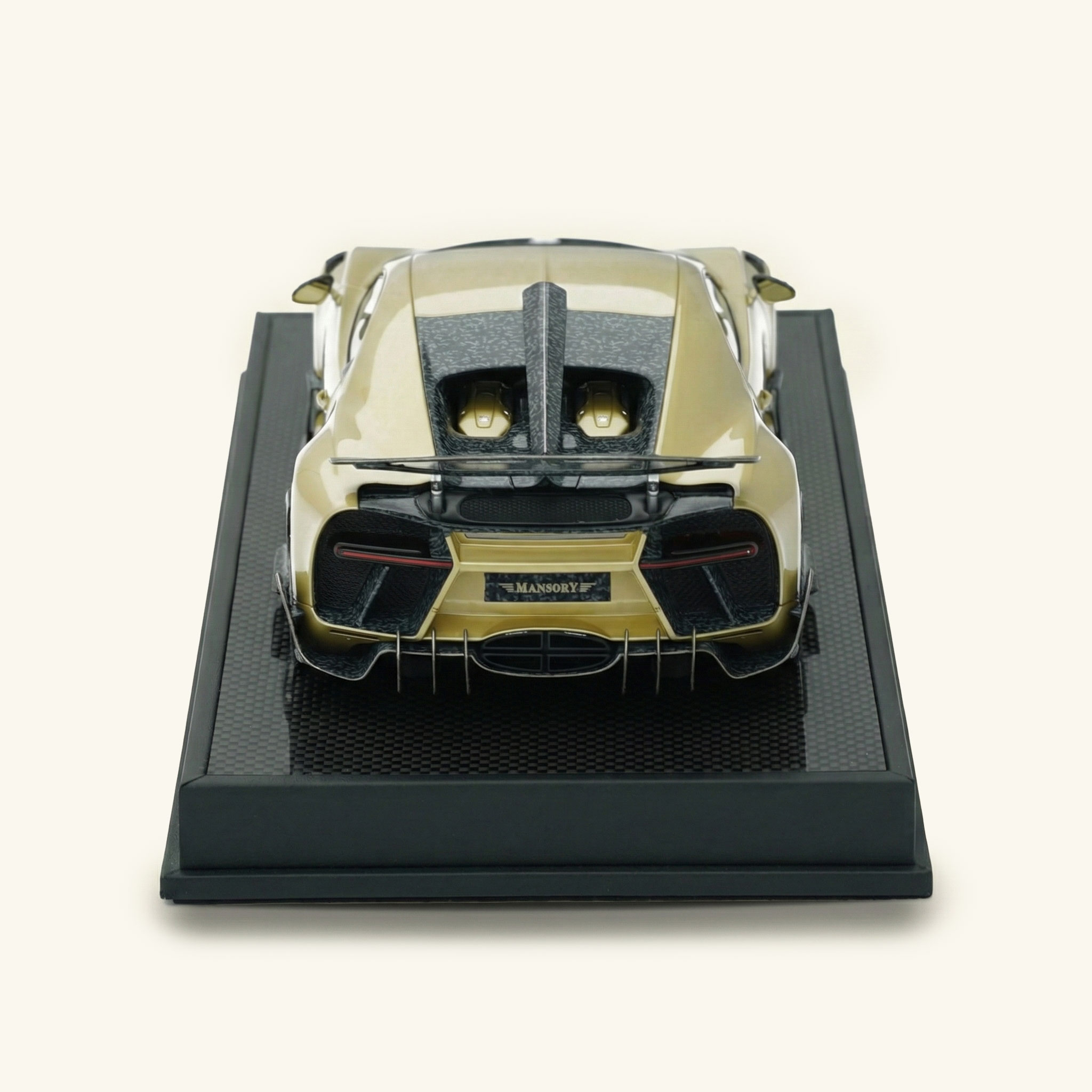 The Mansory Bugatti Centuria model car 1:18 in Champagne Gold is a refined centerpiece for collectors and automotive art enthusiasts. Crafted with exceptional precision, this resin model captures the aggressive elegance, bespoke bodywork, and luxurious details of the original Mansory design in true-to-scale form. From its sculpted aerodynamics to its flawless metallic finish, every angle reflects exclusivity and craftsmanship. Ideal for display in galleries, offices, or private collections, this piece transcends a simple model and becomes a statement of taste and performance culture. As part of the resin models collection at Mente Art Gallery, this artwork is fully customizable—finish, color tone, detailing, and presentation can all be tailored to your vision, ensuring each piece is as unique and personal as the collector who owns it.