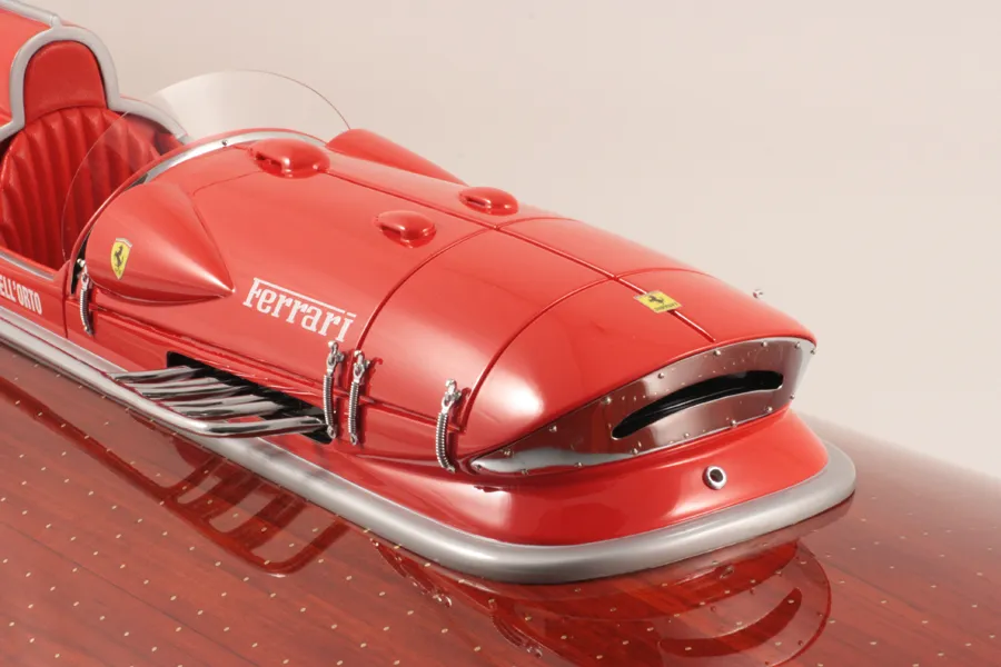 Riva Boats-Kiade Model Arno XI 87 is a striking large-scale decorative model inspired by the legendary Italian racing hydroplane known for its record-breaking performance. With its elongated silhouette and dynamic proportions, this piece captures the essence of speed, innovation, and nautical prestige. Designed for luxury interiors, executive offices, lounges, and curated display spaces, it delivers a commanding presence while maintaining refined balance. The precise detailing and smooth finish highlight craftsmanship and historical significance.