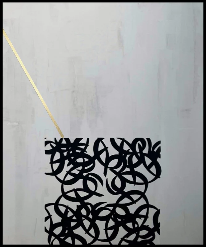 “Nominal” is a sophisticated blend of minimalism and depth, designed to elevate any contemporary space. This handmade painting features layered black loops and curves over a crisp white background, forming a captivating abstract composition.