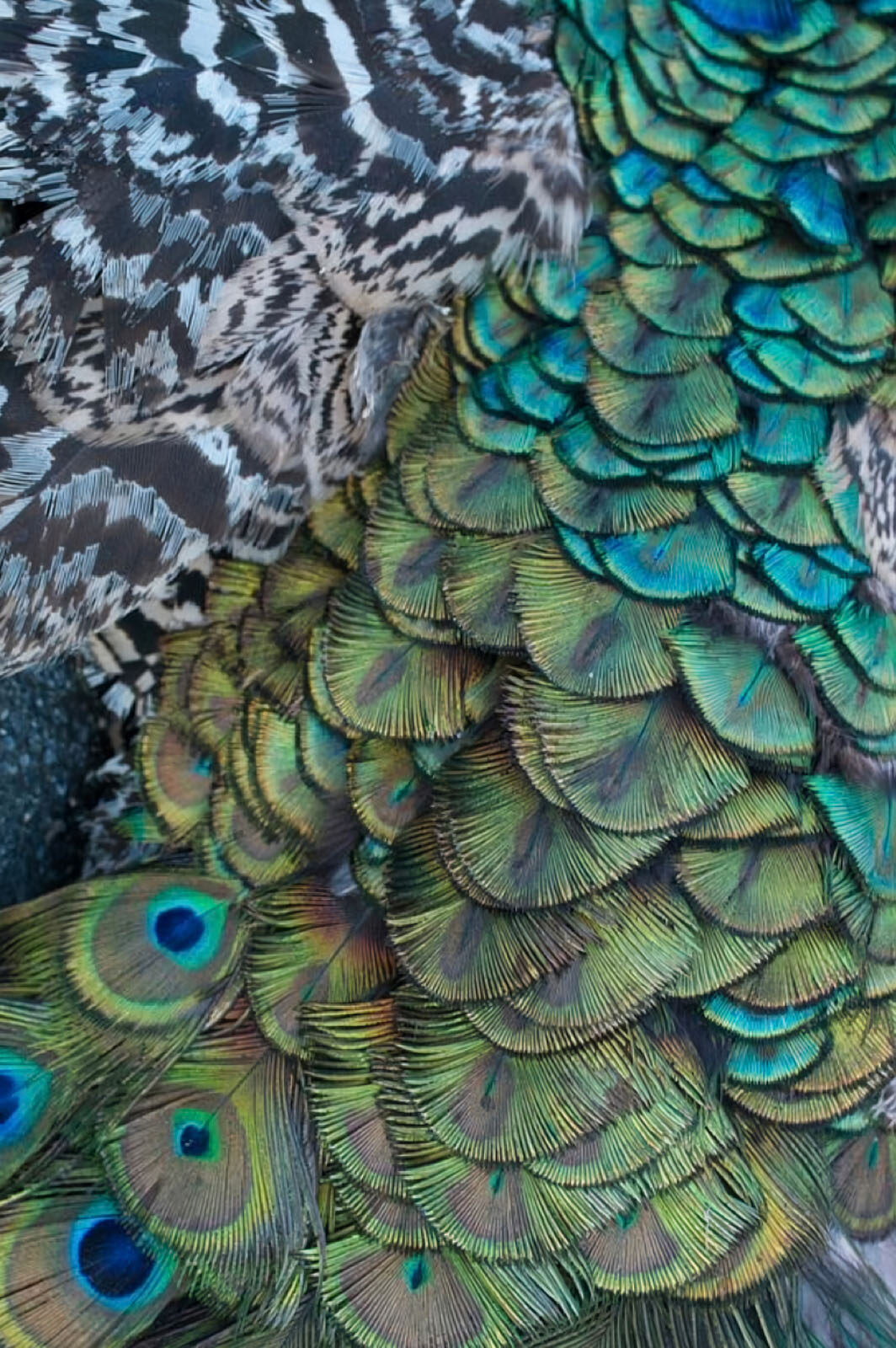This breathtaking handmade painting celebrates the mesmerizing beauty of peacock plumage in all its glory. The composition masterfully contrasts vibrant iridescent scales in jewel-toned blues and greens against softer, muted feather textures in elegant grays and whites. Each meticulously painted feather comes alive with incredible detail – from the iconic “eye” patterns with their concentric rings of color to the delicate filaments that catch the light.