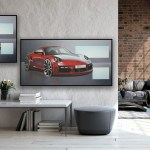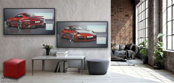This handmade painting captures the iconic Porsche 911 GT3 in vibrant red, presented in a dynamic three-quarter view that highlights its sleek curves and powerful stance. Set against a modern gray gradient background with minimalist white accents, the realistic detailing brings the sports car to life, making it an eye-catching statement piece. Perfect for car enthusiasts and art lovers alike, this striking artwork adds speed, style, and sophistication to any space.