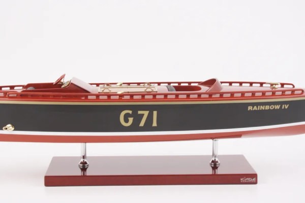 Riva Boats-Kiade Rainbow IV 50cm Model is a finely crafted decorative model inspired by the legendary racing yacht known for its elegance and competitive spirit. With its sleek 50cm scale and aerodynamic silhouette, this piece reflects performance, prestige, and refined nautical design. It enhances luxury interiors, executive offices, lounges, and curated display spaces with a dynamic yet balanced presence. The precise detailing and harmonious proportions create a sophisticated statement without excess.