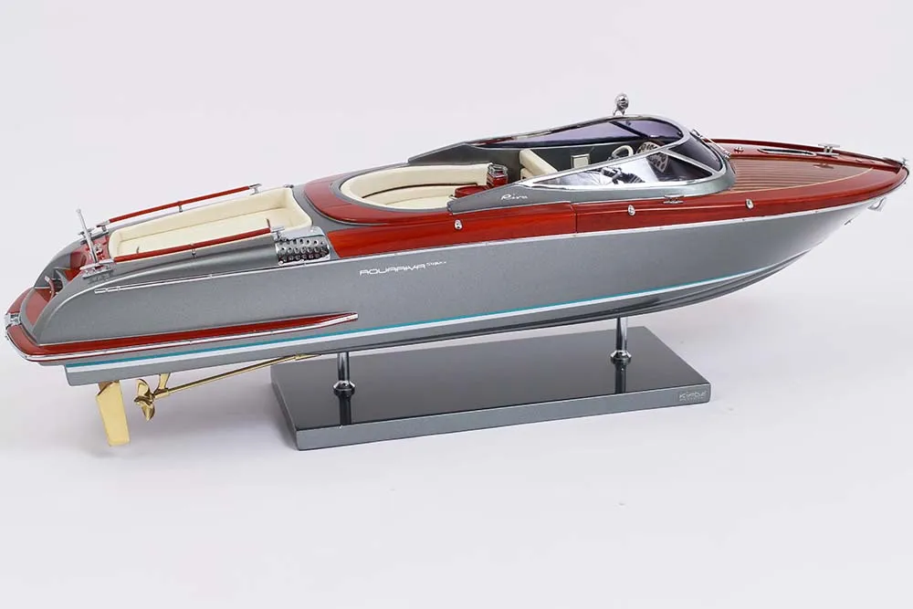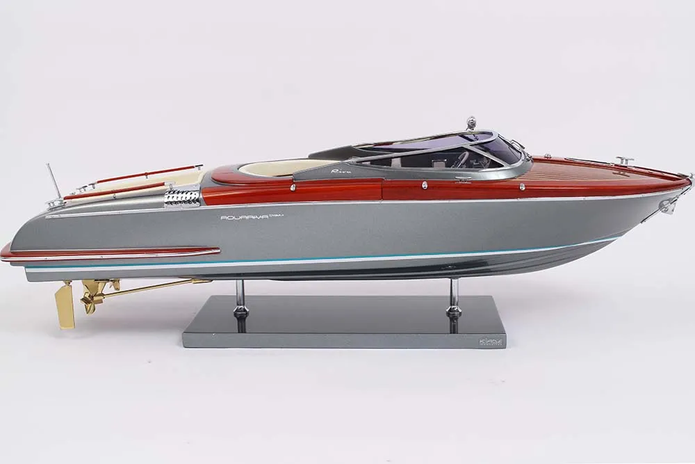 Riva Boats-Kiade Riva Aquariva Super 56cm (Grey Shark) is a refined decorative model inspired by one of the most iconic modern Italian runabouts. Crafted in a balanced 56cm scale, it captures the yacht’s sleek profile, elegant proportions, and contemporary Grey Shark finish with striking precision. The smooth lines and meticulous detailing reflect timeless craftsmanship blended with modern nautical performance. Ideal for luxury interiors, executive offices, lounges, and curated display spaces, this model introduces a sophisticated maritime presence without overpowering the setting. Its compact yet commanding scale makes it a versatile statement piece for refined environments.