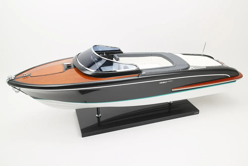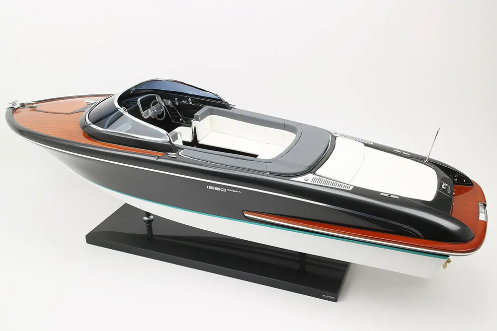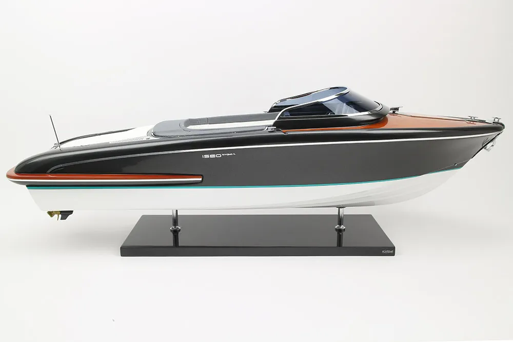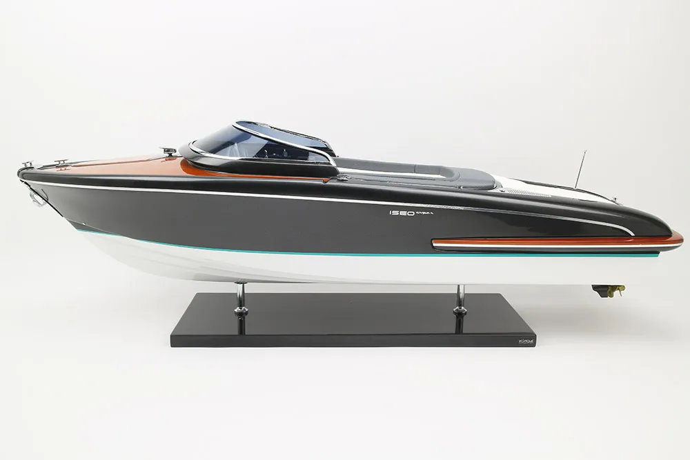 Riva Boats-Kiade Riva Iseo 82 is a refined decorative model inspired by the elegant Italian speedboat known for its streamlined silhouette and classic craftsmanship. With its impressive 82cm scale and precise detailing, this piece conveys prestige, motion, and timeless maritime design. Perfect for luxury interiors, executive offices, lounges, and curated display spaces, it adds character and sophistication while maintaining balance and harmony within the environment.