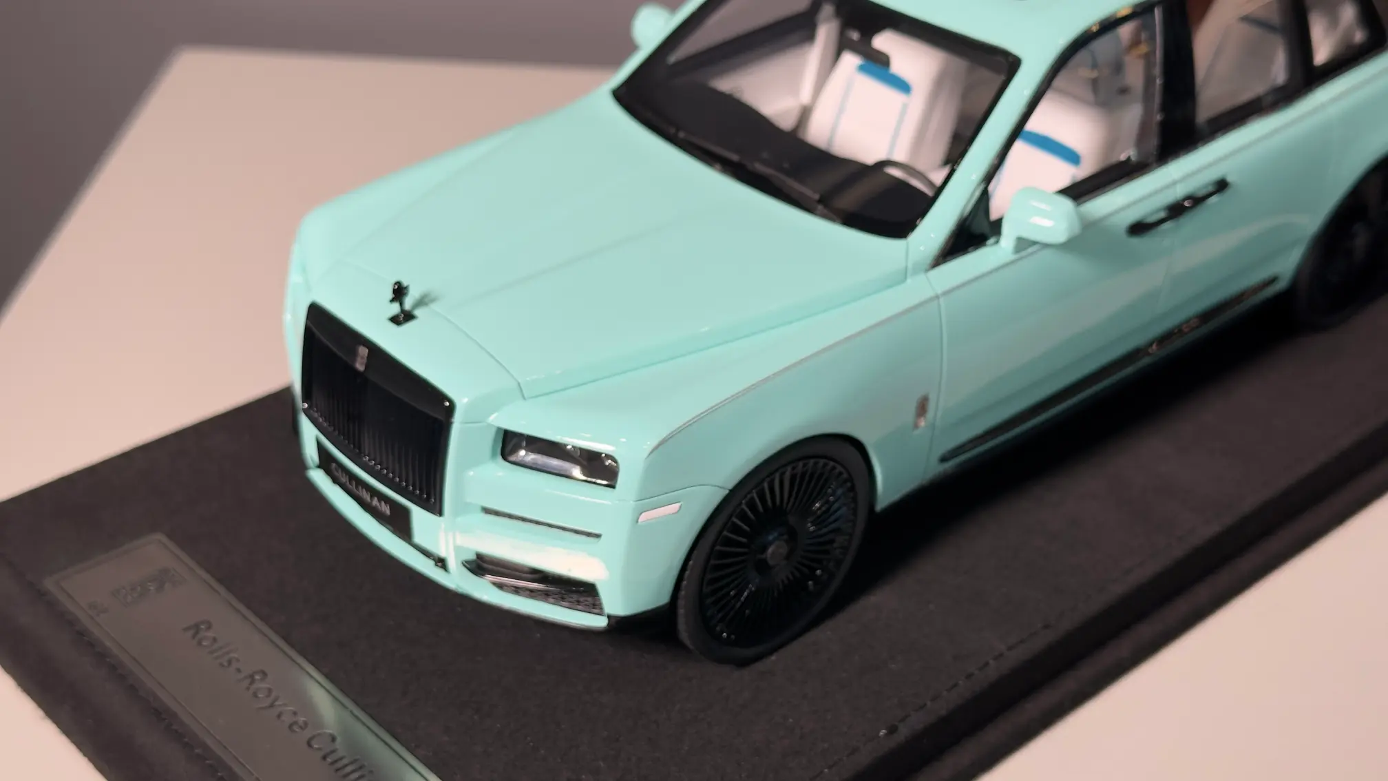The GL Models Rolls-Royce Cullinan in a stunning Tiffany Green finish is a symbol of elegance and exclusivity. This 1/18 scale resin model captures the essence of the luxury SUV with impeccable exterior detailing. As a non-opening model, it maintains clean lines and precise craftsmanship. With only 39 pieces produced, this limited-edition collectible is a rare gem for discerning collectors.