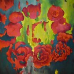 This handmade painting is a delightful depiction of a blossoming garden, where the vivid interplay of colors creates a stunning visual experience. It features a variety of flowers in full bloom, with rich reds and pinks that stand out against the lush green background. The artist has employed a dynamic range of brush strokes, from delicate to bold, adding an abstract touch with drips and splashes of paint that contribute to the painting’s lively feel. The gradients within each flower lend depth and dimension, while the overall composition is both balanced and vibrant, drawing the viewer into its colorful embrace. This piece would make a beautiful addition to any collection, offering a burst of natural beauty and artistic flair.