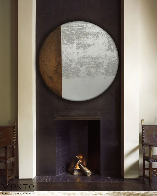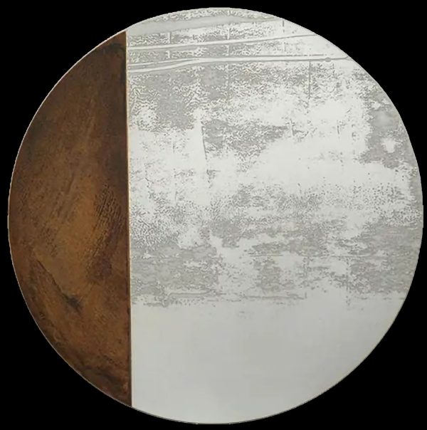 This unique combination of wood and landscape creates a striking contrast that is sure to catch the eye. Whether you’re looking to enhance your living room, bedroom, or office space, this handmade painting is sure to add a touch of sophistication and style. Its circular shape further sets it apart from traditional rectangular paintings, making it a truly unique piece to own.