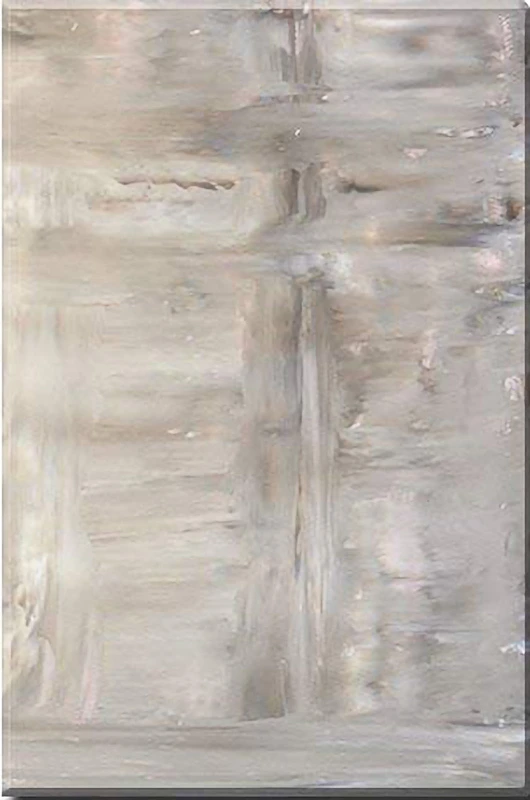 This is a mesmerizing handmade painting that presents a gray and white abstract landscape. Rendered in a loose and fluid style, the colors blend together in an organic way, creating a soothing visual effect. The painting is predominantly gray and white, with subtle hints of pink and blue adding depth to the piece. This vertical artwork, set against a white background, exudes a sense of tranquility and would make a serene addition to any collection or space.