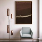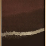 This is a mesmerizing abstract painting that is sure to captivate any viewer. Encased in a gold frame, the painting features a predominantly dark brown and black color scheme, interrupted by a striking white horizontal stripe across the middle. The white stripe, with its rough, textured appearance, adds an intriguing contrast to the dark background. The painting’s abstract nature invites viewers to interpret and find their own meaning in it, making it a conversation starter. The gold frame, with its thin inner border and thicker outer border, adds an extra touch of elegance and sophistication.